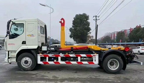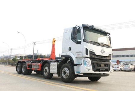 國六東風柳汽乘龍前四后八勾臂垃圾車_帝城環衛牌HDW5314ZXXL6型車廂可卸式垃圾車
